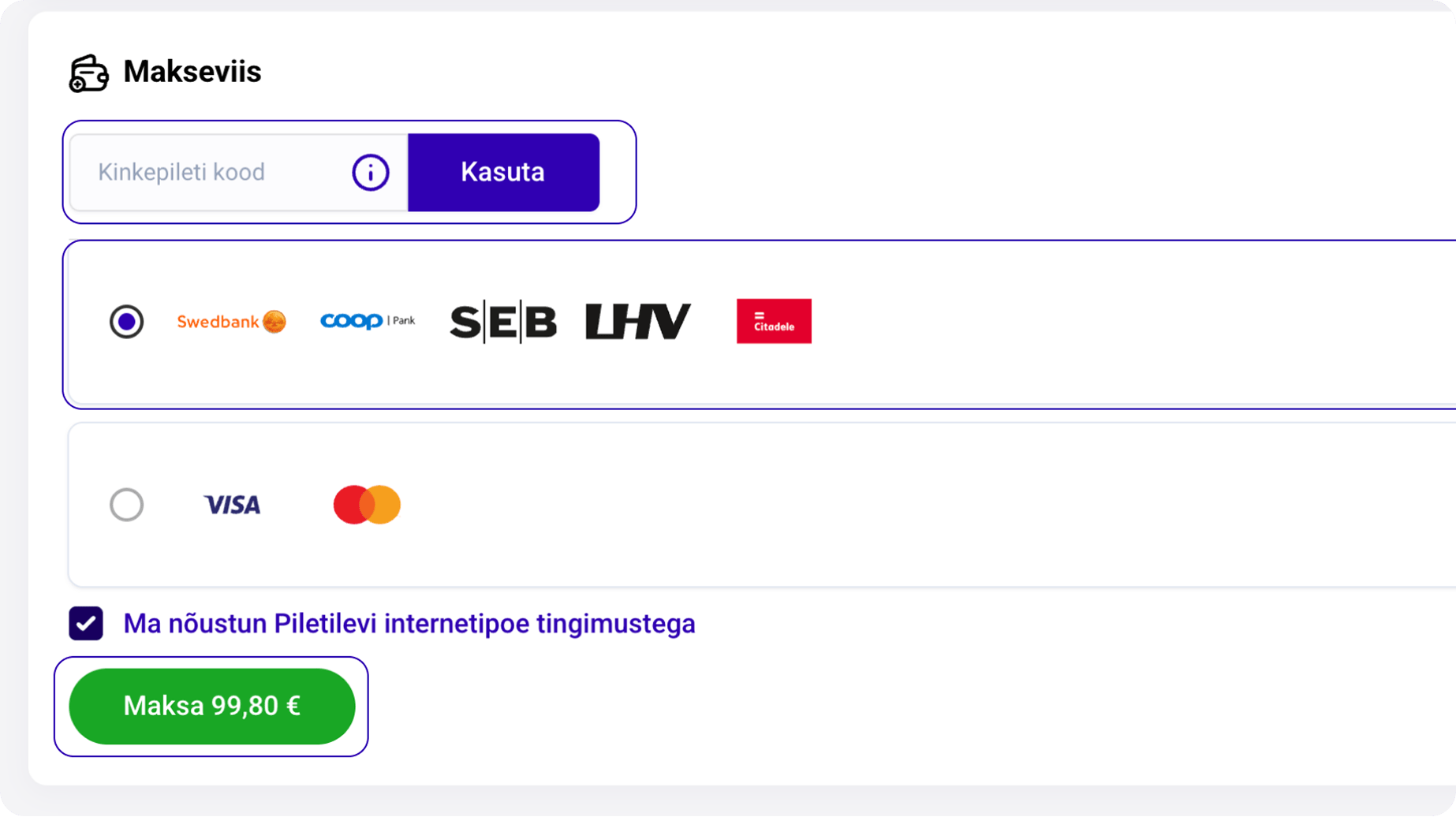 * Проверьте информацию о покупке, ознакомьтесь и подтвердите согласие с условиями использования интернет-магазина Piletilevi, после чего нажмите кнопку ОПЛАТИТЬ.