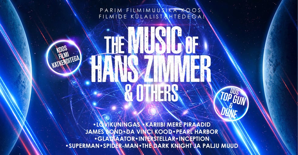 "Hans Zimmeri muusika" - esitab piraat filmist "Kariibi mere piraadid"! Kogege ainulaadseid ja parimaid filmide "Düünid", "James Bondi", "Kariibi mere piraadid", "Lõvikuningas", "Gladiaator", "Pimeduse rüütel", "Inception", "Interstellar" ja paljude teiste tipplavastuste partituure – põneval kontserdil, kus esinevad filmiorkester, koor, külalissolistid, filmist valitud erikülaline ja film! Sukelduge Hans Zimmeri muusikalisse universumisse ja kindlustage oma piletid kohe!